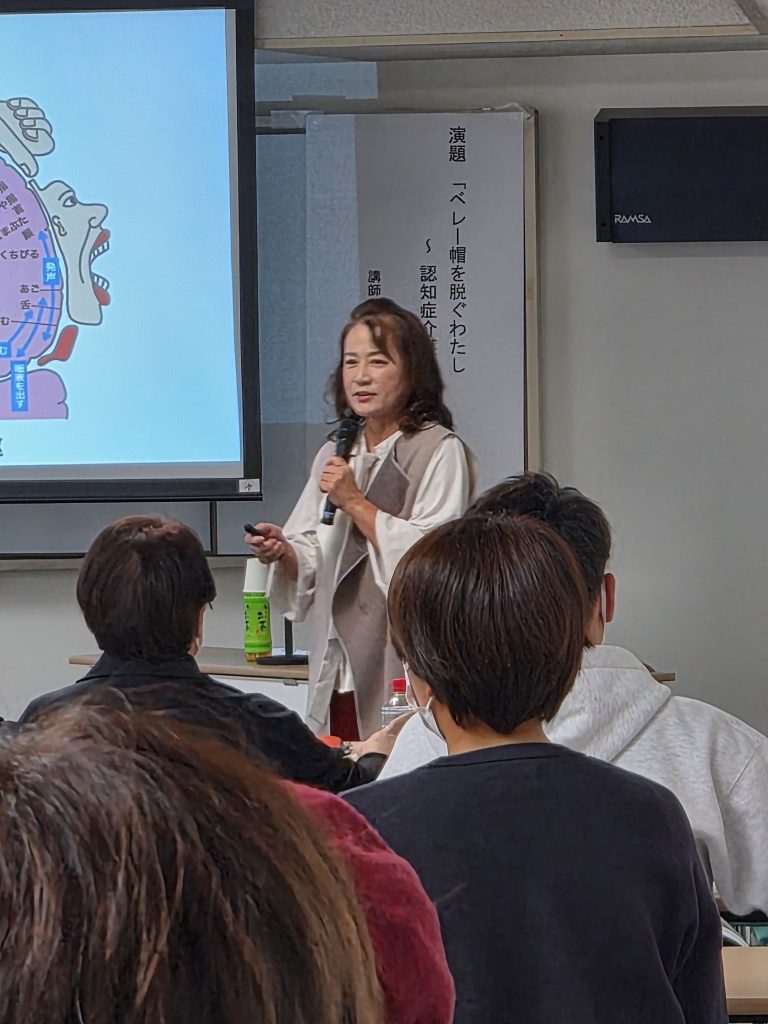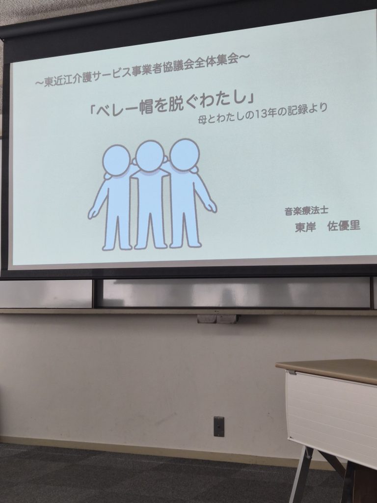 今回は、音楽療法士の東岸佐優里氏をお迎えし、「ベレー帽を脱ぐわたし~認知症介護13年の記録より~」をテーマに、講演をいただきました。